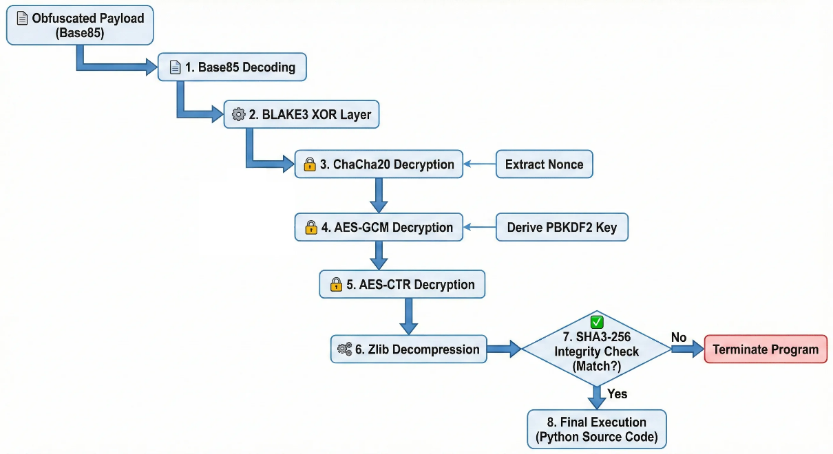 The malware has improved a lot over time, as in December 2023, it was full of typos like “deamon” and “verifing,” but by September 2024, they were using PyOBFUSCATE to hide their work. By late 2025, it had become a professional tool with a modular design using three parts: Wire, Relay, and Commander.