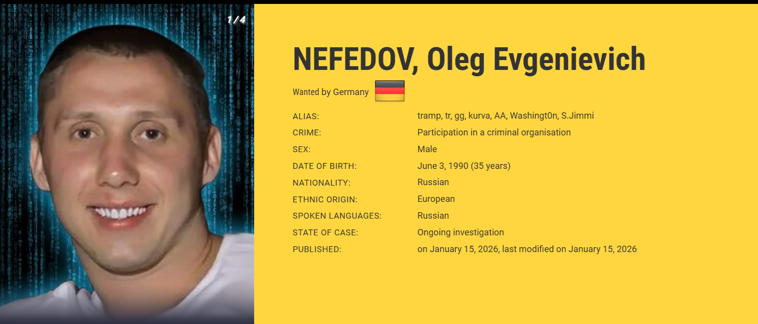 Germany’s Federal Criminal Police Office (BKA) identified the suspected leader of the group as Oleg Nefedov, a 36-year-old Russian national, who is wanted on suspicion of forming a criminal organization abroad, large-scale extortion, and related cyber offenses.