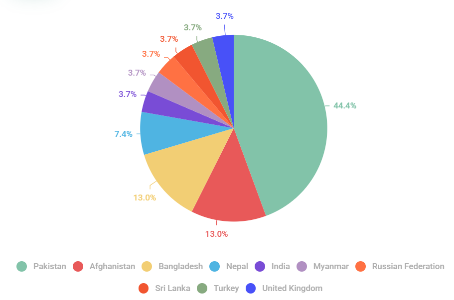 Mysterious Elephant's targets so far have included entities in Pakistan, Bangladesh, Sri Lanka, and, to a smaller extent, Afghanistan, Nepal, and Sri Lanka.