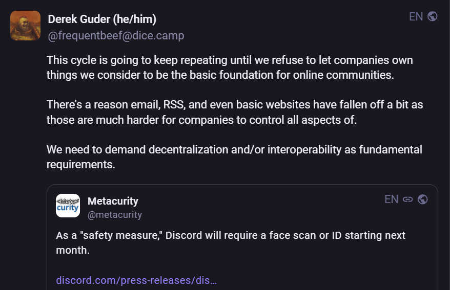 Related: Discord, r/pcgaming, BBC News, XDA, The Verge, Kotaku, Express Tribune, Help Net Security, The Hill, Games Industry.biz, RTT News, Deccan Chronicle, PC Gamer, WebProNews, BiometricUpdate, The Record, r/cybersecurity, Siliconera, Mashable, AndroidHeadlines.com