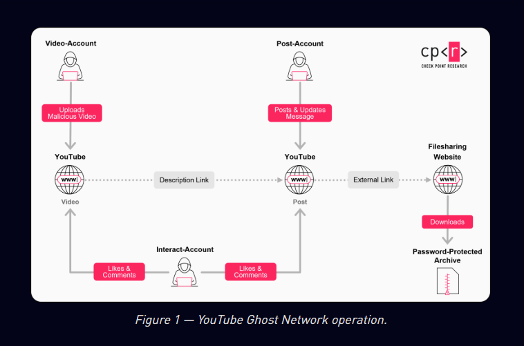 Researchers at Check Point report that Google has taken down thousands of YouTube videos that were part of the so-called "YouTube Ghost Network" that was quietly spreading password-stealing malware disguised as cracked software and game cheats.