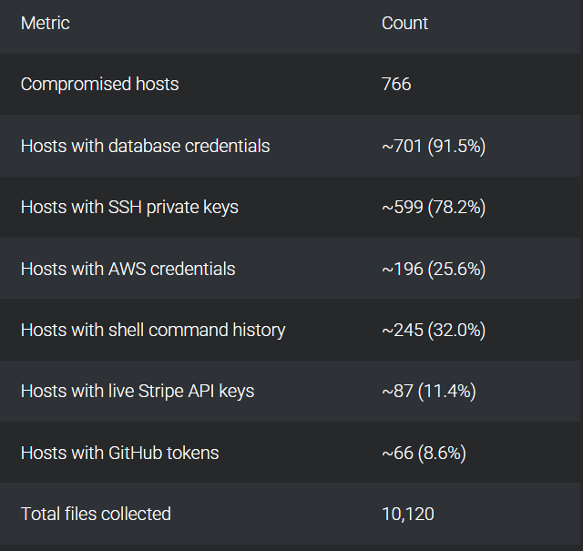 Following initial access, the attackers leverage automated scripts and the Nexus Listener framework to harvest credentials, cloud tokens, SSH keys, and environment secrets at scale.