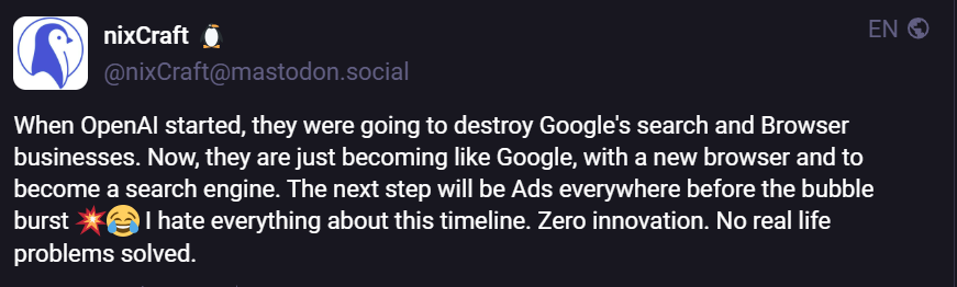 In particular, ChatGPT should explain the steps Atlas takes to avoid prompt injection attacks. Right now, it looks like the primary defense is expecting the user to carefully watch what the agent mode is doing at all times. (Simon Willison’s Weblog)