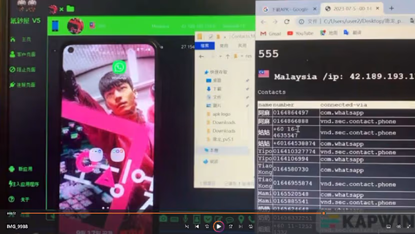 A Malaysian man, Cheoh Hai Beng, who was roped into a criminal syndicate by a Taiwanese man he met in a Korean prison, recorded videos teaching syndicate associates how to use malware that could allow remote control of Android mobile phones.