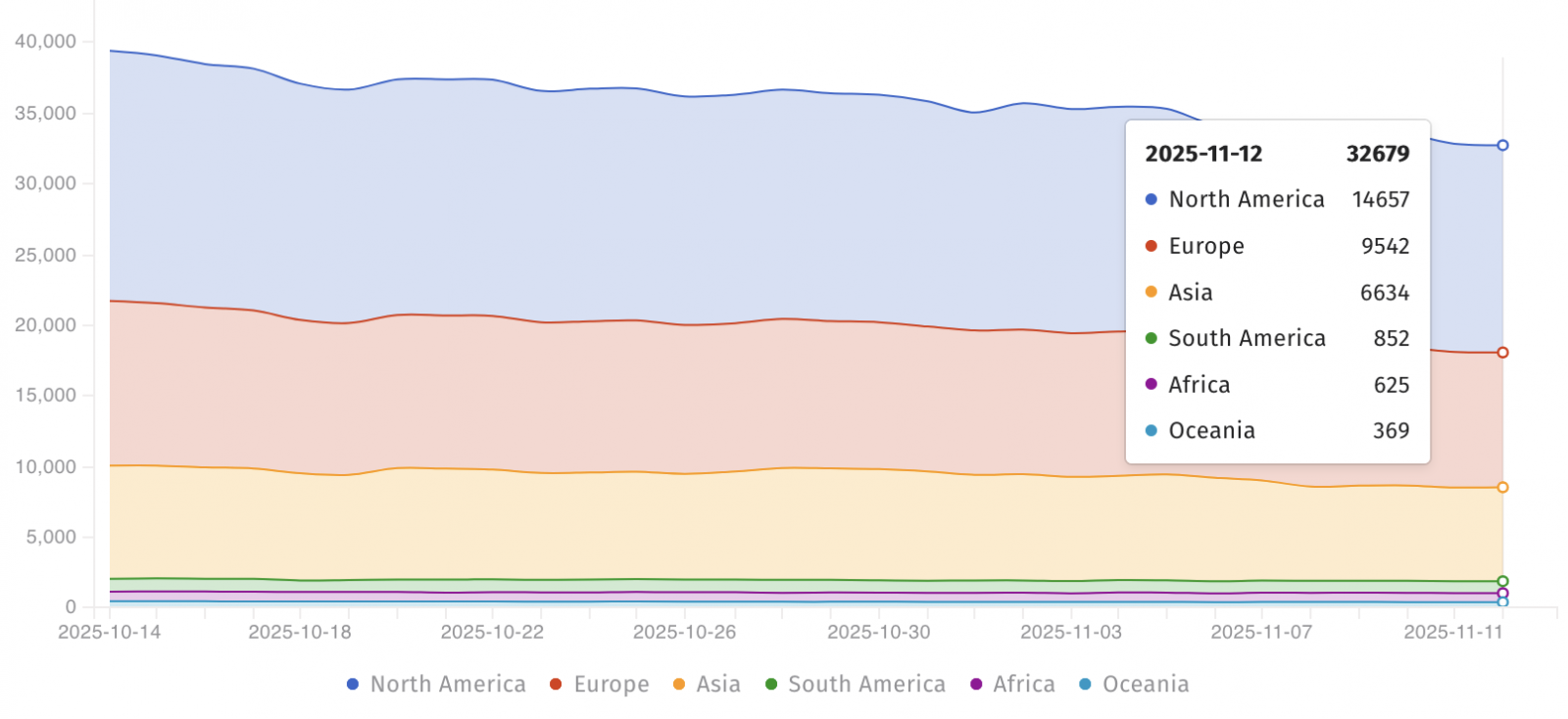 Internet monitoring platform Shadowserver currently tracks over 30,000 Cisco devices vulnerable to these attacks, down from more than 45,000 when it first began tracking the two vulnerabilities in early October. (Sergiu Gatlan / Bleeping Computer)