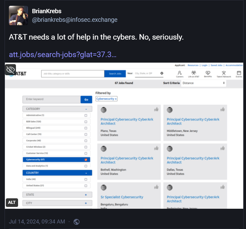 Related: SEC, AT&T, CISA, Bloomberg, Digital Trends, AT&T, Krebs on Security, Cybernews.com, PCMag, PhoneArena, CoinGape, SiliconANGLE, The Verge, , Boing Boing, Silicon Republic, Tech Xplore, itprotoday, Pixel Envy, AT&T, Verge, Wired, TechCrunch, SiliconANGLE, ABC News, The Cyber Express, ZDNet, Macworld, Wall Street Journal, The Register, MacRumors, International Business Times, Gizmodo, CRN, Washington Post, SC Media, CNBC, NBC News, Engadget, CNET, Reuters, Business Insider, USA Today, TIME, Bloomberg, SiliconRepublic, CyberScoop Tech Monitor, New York Times, Fortune, TechRepublic, Light Reading, Fierce Network, RCR Wireless News, PYMNTS.com, Neowin, TechRadar, Pocket-lint, Hackread, Total Telecom, KnowTechie, Mashable, AppleInsider, NPR, Quartz, PCMag, GovInfoSecurity.com, Wccftech, Axios, iClarified, ComputerWeekly.com, Patently Apple, Android Headlines, Cord Cutters News, The Stack, 9to5Mac, Newser, Android Authority, Stack Diary, Help Net Security, New York Daily News, Benzinga, Daring Fireball, Constellation Research, CNBC, Barron's Online, PYMNTS.com, RCR Wireless News, Infosecurity Magazine, PhoneArena, Tom's Guide, CRN, Investor's Business Daily, The Cyber Express, CPO Magazine, Dark Reading, Silicon Republic, Mashable, The Cyber Express, PC Mag, PhoneArena, CoinGape, Silicon Angle, The Verge, Digital Trends, iTechPost