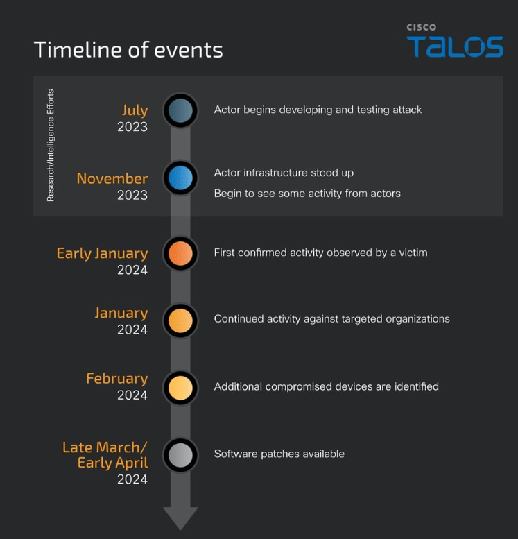 The hacking campaign began as early as November 2023, with most intrusions taking place between December and early January of this year when Cisco first learned of the first victim. “The investigation that followed identified additional victims, all of which involved government networks globally,” the company said.