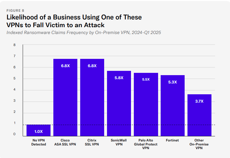 At-Bay, a provider of cyber insurance and a vendor of managed detection and response products, reports that organizations using Cisco and Citrix VPN devices were nearly seven times as likely to suffer a ransomware infection over a 15-month period.