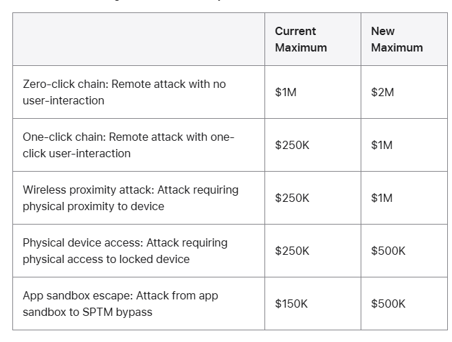 In addition to individual payouts, the company's bug bounty also includes a bonus structure, adding additional awards for exploits that can bypass its extra secure Lockdown Mode as well as those discovered while Apple software is still in its beta testing phase.