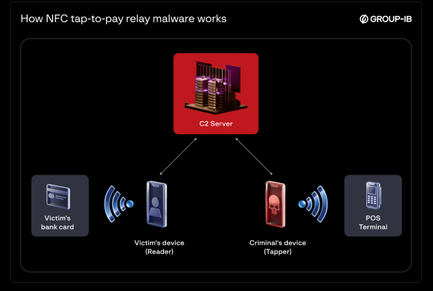 Victims are typically targeted through smishing and vishing campaigns. They are persuaded to install the malicious app and tap their payment card against their phone. From there, card data is transmitted via a command-and-control (C2) server to a criminal-controlled device, which completes transactions using illicitly obtained point-of-sale (POS) terminals.