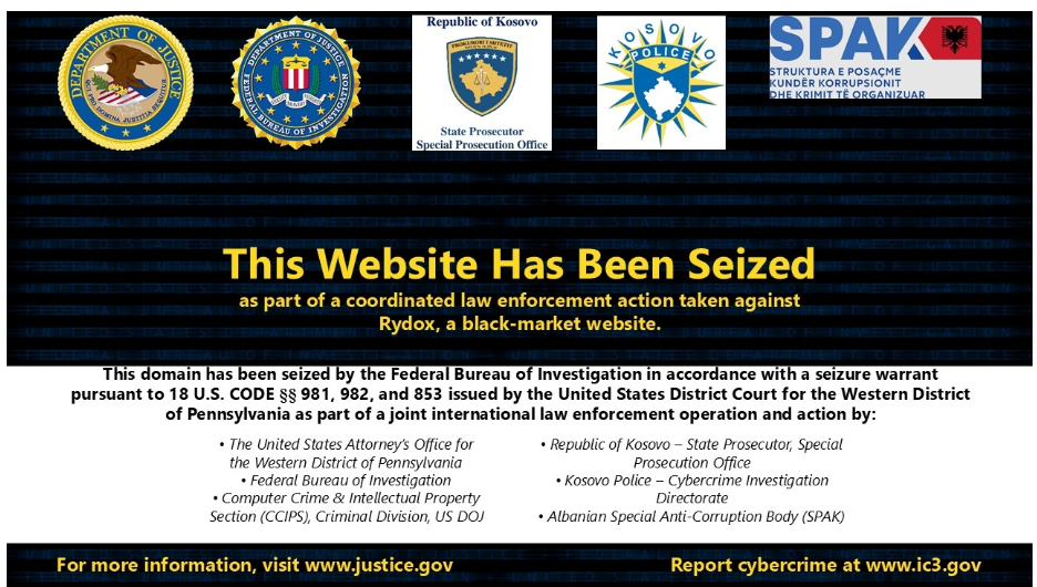 Albanian law enforcement seized the Rydox cybercrime marketplace and arrested three administrators in collaboration with international partners.